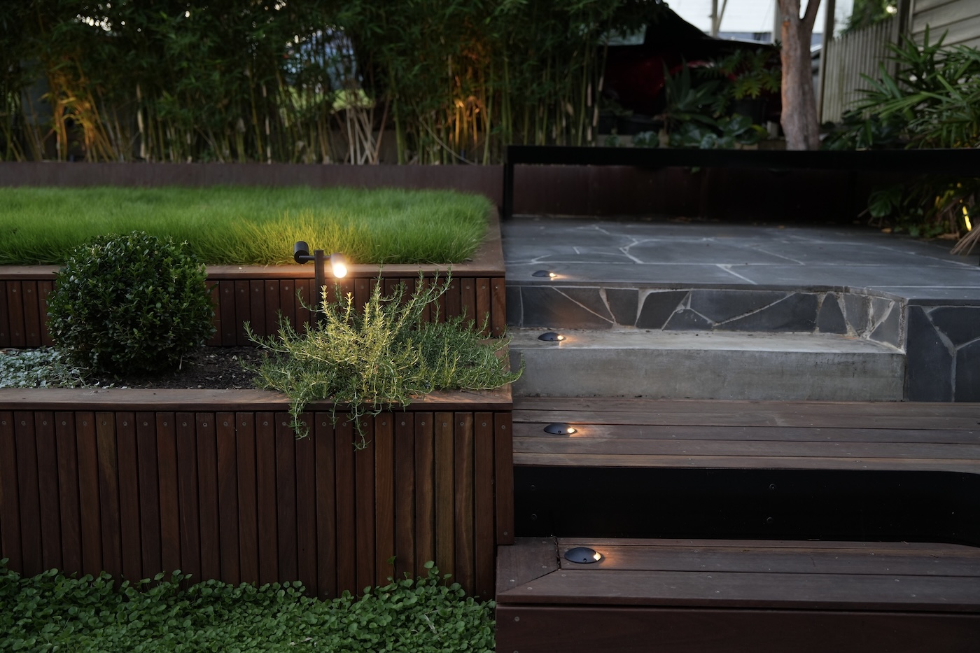 Gold Leaf Landscapes and Jarred Michael Projects have transformed a normal backyard to an absolute stunning beauty. Throughout the journey of the transformation, the team has kept me informed of every step and was very transparent on any potential cost. You can tell that Alex and Jarred are both very passionate about their jobs and take pride in their work and result.Starting from the designing phase, they translated their work ethic, professionalism and passion into actions. They spent at least 3 hours working through multiple changes and options with me just so I am satisfied with the final design. Whenever they see something that do not meet their desired quality, they will put in the extra hours without charges just to deliver the promise. That has resulted in them working some late hours into the nights and during weekends due to the underwhelming weather.Some of the examples where I must hat off and specifically call out are – After putting on the timber deck, we found out that the position of the deck may breach the termite barrier. The team has shown their upmost integrity in getting things right. As this is something we both wasn’t aware of until the termite inspector came, the team has decided to take the hit by spending a few days work to remove and putting them back. I am not proud of being the cheapskate who doesn’t pay for that extra hour since it should also be my responsibility to understand the terminate barrier requirement (and not just the landscaper), but that just showed how much integrity and understanding the team was. Other than that, if Alex couldn’t make it to the side during the day, he will come by at least at some key milestone to check if the quality meets its company commitment – the quality you can trust. I remember there were a few nights, where some of the things may not live up to the company’s quality (which apparently higher than mine), Alex was touching up those bits and pieces in the dark with only the lights from the phone. There are many more examples that I can think of, but these are just some that I think I should kudos to.I will 100% look for them again if I have any other landscape project, or any friends who are interested in transforming their backyard. You may find some other teams or companies who can show you how big their projects in the past, but I believe you can’t find someone who can deliver with such passion, integrity, and high quality.
