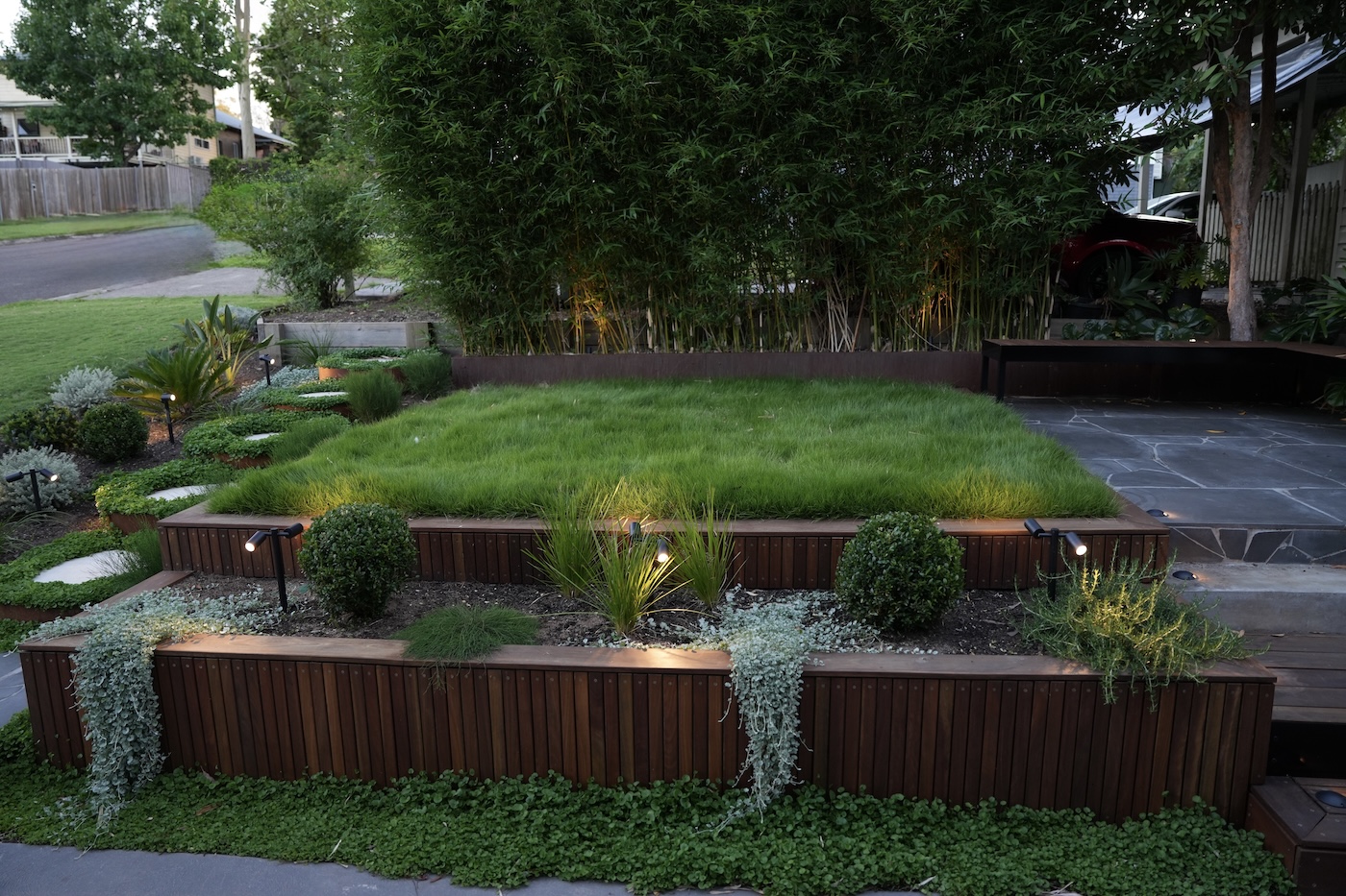 Alex and the team at Gold Leaf Landscapes transformed the front entrance, private courtyard and carport of our terrace house into an urban oasis that perfectly transitions between indoor and outdoor open-plan living. The team have designed a stunning outdoor environment (both front yard and backyard) that is inviting, family-friendly (specifically baby-friendly) and a space to relax from our busy day-to-day.At Gold Leaf Landscapes, no detail is too small, and every design choice is carefully considered and customised to ensure the final execution is not only of the utmost quality but also beautiful and practical too.Alex and the team worked in collaboration with us each step of the way from scoping and planning, to design, and building to ensure that the end product was something that we were both proud of.Thank you Gold Leaf Landscapes for the excellent service and care that you have applied to our landscape design project. We are very happy customers and have already recommended you to our friends and family!